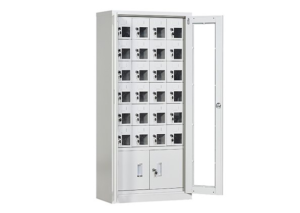 手機保密柜正面為對開金屬邊框玻璃大門,便于觀察柜內(nèi)情況,堅固透亮,美觀大方。